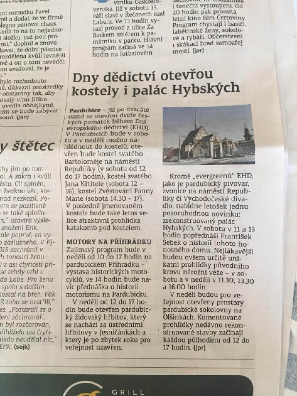 Dne 15.9.2018 byl palác Hybský na titulní straně brožury pro Dny evropského dědictví, dům si přišli prohlédnout stovky lidí.
